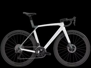 Hjulsettet består av Bontrager Aeolus Elite 50 karbonhjul, tubeless ready og med 50 mm felgdybde for en ideell balanse mellom aerodynamikk og kontroll. De er kombinert med Bontrager R3 28 mm tubeless-dekk, med klaring for opptil 32 mm dekkbredde. Karbon-setepinne i aero-design og Bontrager Aeolus Elite-sete bidrar til både komfort og effektiv kraftoverføring.