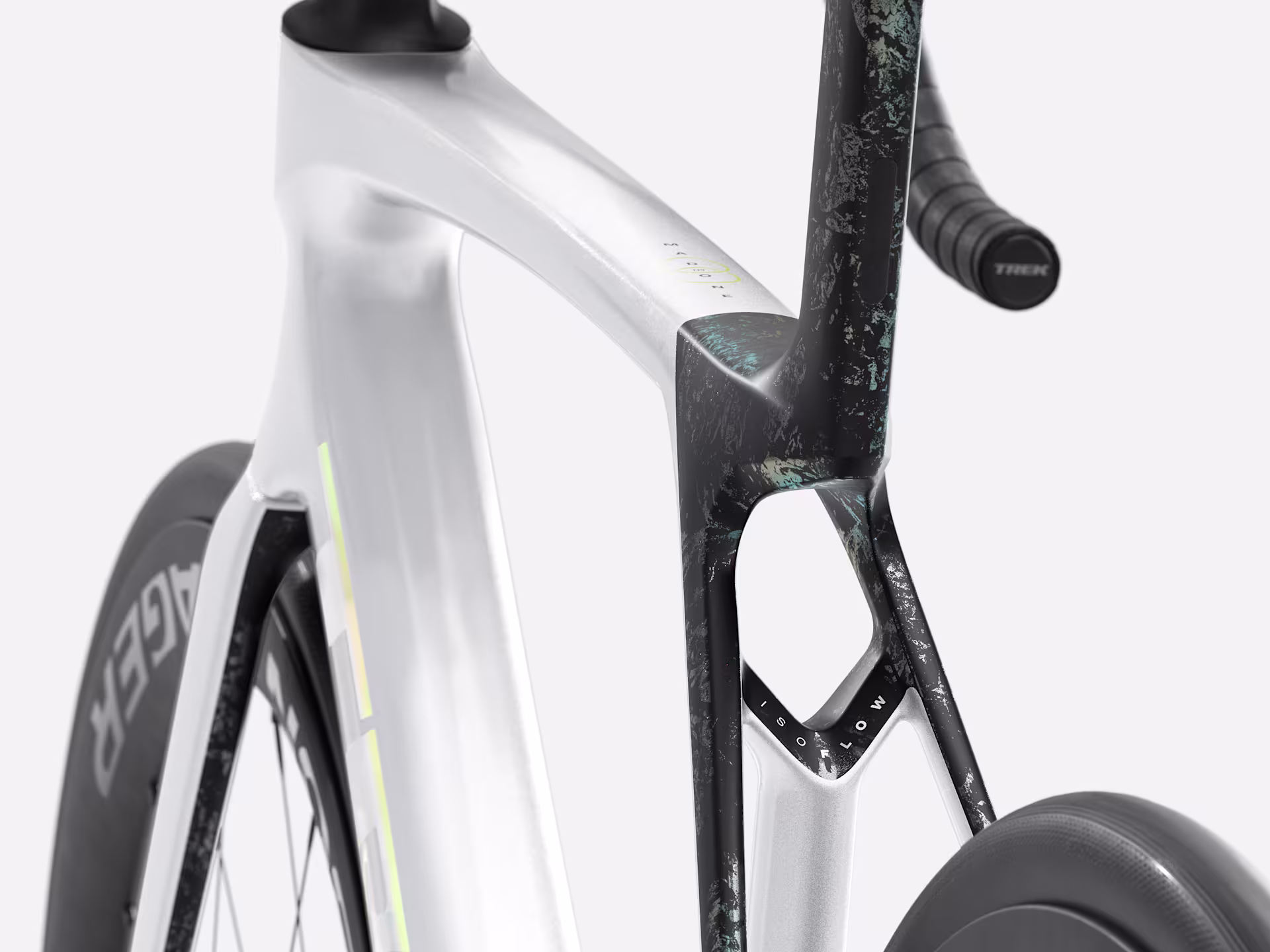 Den helkarbon Madone Gen 8-gaffelen med konisk kronerør gir presis styring og trygg bremsekontroll, selv i høy fart. Sammen gir ramme og gaffel en balansert og forutsigbar sykkel som føles like hjemme i bratte klatringer som i raske utforkjøringer.